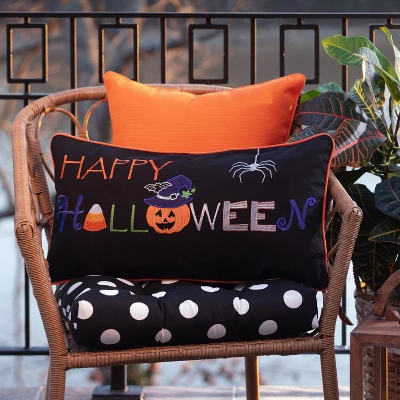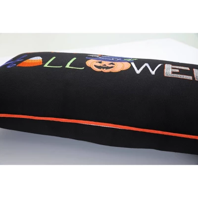 13″x24.5″ Indoor Happy Halloween Black Rectangular Throw Pillow Cover – Pillow Perfect