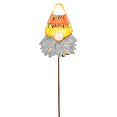 Halloween Candy Corn Gnomes – One Garden Stake 26.5 Inches – Garden Happy Halloween – F21003 – Metal – Orange