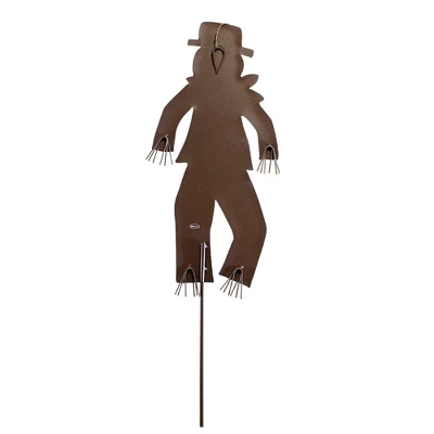 Scarecrow With A Jack-O-Lantern Face Wears Blue Pants With Patches, A Mint Color Jacket With Leopard Print Pocket, Yellow Neck Scarf And A Straw Hat With A Leopard Print Band.. New.. Measurements 32.25 In H X 7 In W X .25 In D. . No Assembly Required. Imported