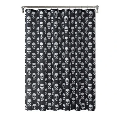 Kate Aurora Halloween Accents Black & White Spooky Skulls Fabric Shower Curtain – Standard Size