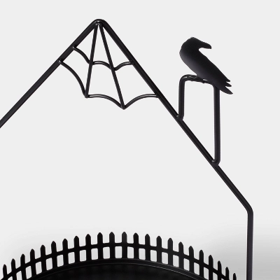 Bring frightfully fun ambiance to your seasonal scene with this Metal Haunted House Halloween Decorative Tray from Hyde & EEK! Boutique™. Made from metal, this black haunted house decorative tray is perfect for displaying a variety of items. Set this decorative serving tray on the kitchen counter with your favorite mugs or tumblers to curate a casual beverage center, or keep it on your dining table or side table filled with Halloween goodies.