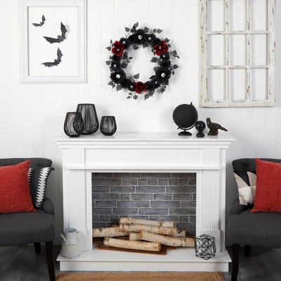 Nearly Natural 24” Eyeball Rose Halloween Artificial Wreath